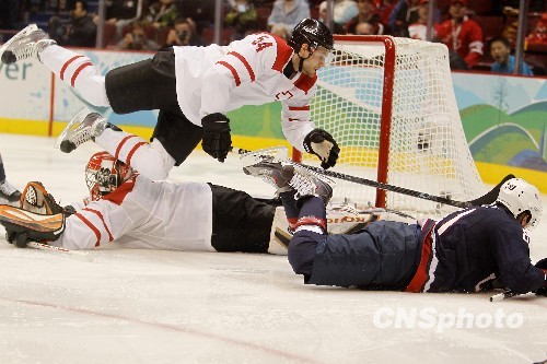 当地时间2月24日,2010年温哥华冬奥会男子冰球1/4决赛美国队与瑞士队的比赛在加拿大冰球广场进行,最终美国队2:0战胜瑞士,晋级四强。