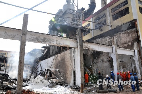 中国淀粉行业著名企业河北省秦皇岛骊骅淀粉股份有限公司淀粉4号车间2月24日16时发生爆炸事故,专家现场初步分析,事故原因可能是车间粉尘爆炸所致。截至25日17时,官方证实现场搜救工作结束,事故已造成19人死亡49人受伤。图为事故现场。中新社发 鲁达 摄