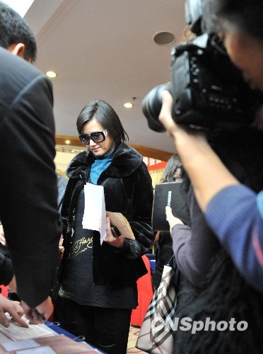 3月2日午后,全国政协委员宋祖英来到北京国际饭店,向全国政协十一届三次会议会务组报到。中新社发 贾国荣 摄