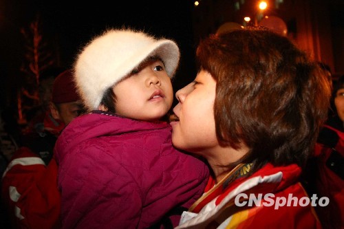图为王濛在亲吻她的外甥女。中新社发 富田 摄