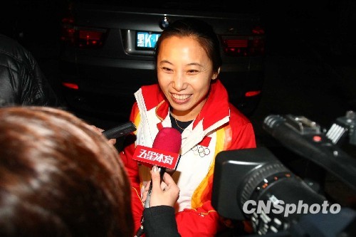 图为中国女子短道速滑队主帅李琰接受记者采访。中新社发 富田 摄