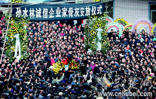 图为信义孙水林魂归故里,数千群众自发送行。图片来源:荆楚网