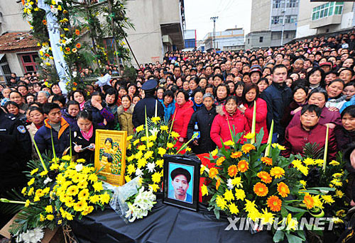 数千群众自发参加孙水林骨灰安放仪式。图片来源:新华网 程敏 摄