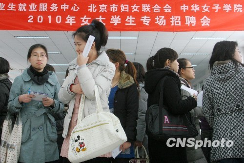 3月3日,“2010年女大学生专场招聘会”在北京毕业生就业服务中心举行。据了解,此次招聘会共有近50家北京市企事业单位参加,共有岗位600余个。其中多以文员、会计、人力资源管理、客服等岗位为主。