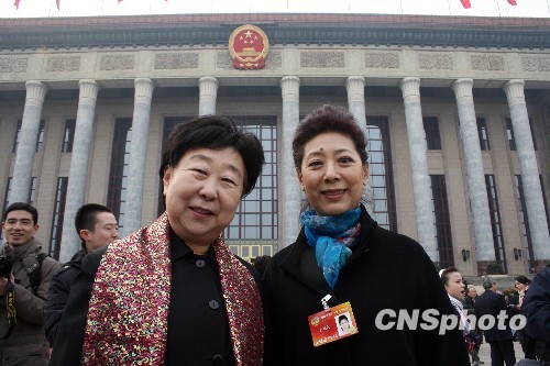2010年3月3日,政协委员冯辛耕、关牧村出席全国政协十一届三次会议开幕式,并在人民大会堂前合影。当天下午15时,全国政协十一届三次会议在北京人民大会堂开幕,2010年全国“两会”揭开大幕。中新社发 金立冬 摄