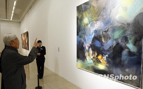 组图:吴冠中参观“朱德群回顾展”(3)——中新网