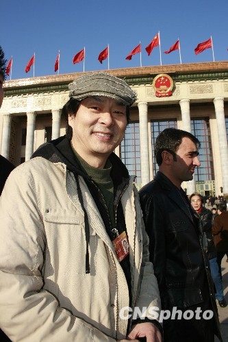 2010年3月9日,全国政协十一届三次会议第三次全体会议在北京举行,政协委员濮存昕面带笑容出席会议。中新社发 金立冬 摄
