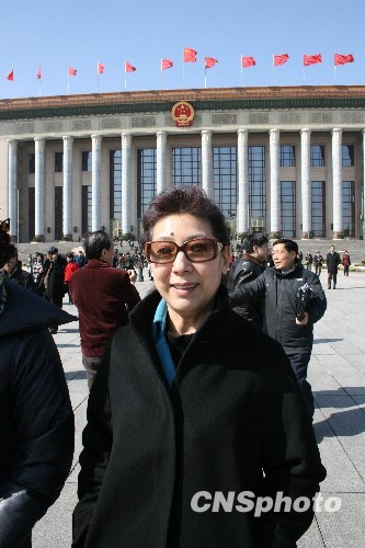 2010年3月10日,政协委员、著名女中音歌唱家关牧村出席全国两会。中新社发 金立冬 摄