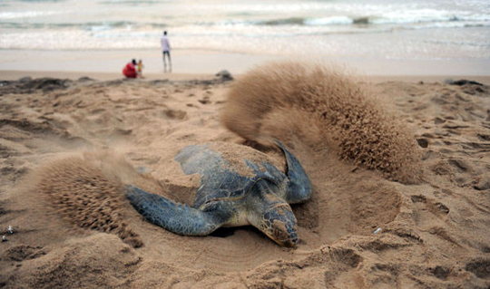 近日,印度布巴内什瓦尔的鲁希库利亚海滩,数千只海龟从孟加拉湾陆续来到海滩产卵。