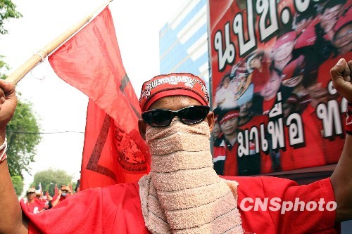 3月17日,泰国反政府红衫军示威者继续抗争,数千名示威者冒着大雨,从曼谷主要集会场地潘发桥,游行到总理官邸,要求总理阿披实下台,解散国会。泰国警方估计,目前集结在曼谷的红衫军示威者比高峰期明显减少。