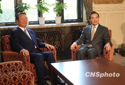 3月17日,国务院台湾事务办公室主任王毅在东京与日本民主党干事长小泽一郎会谈。中新社发 关妍 摄