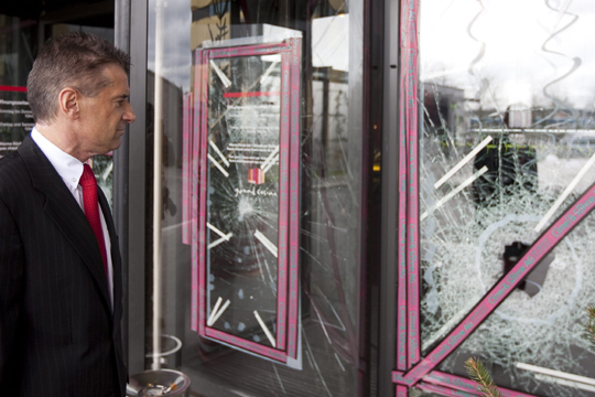 瑞士当局28日表示,当地时间28日凌晨4时,大约10名抢劫犯闯入边境城市巴塞尔一家繁忙的赌场。一名歹徒用大锤砸开前门,其它歹徒挥舞着机枪、手枪,闯入赌场内,抢走数十万美元。