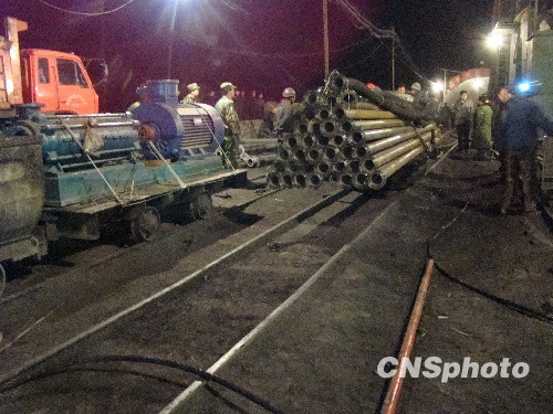 据前方传来的最新消息,经进一步核查,初步确认发生事故时当班下井261人,升井108人,有153人被困井下。救援工作正在紧张有序进行。 中新社发 高增平 摄