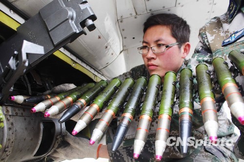 机务官兵填充弹药。中新社发 耿国庆 摄