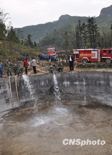 图为南宁消防支队官兵为百色旱区群众送水。中新社发 胡明军 摄