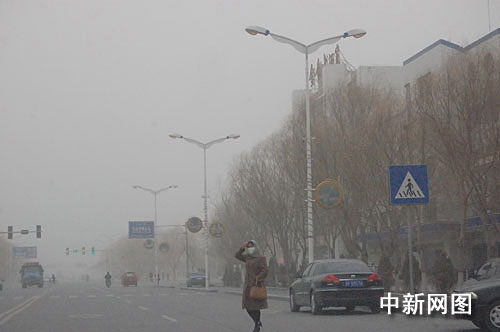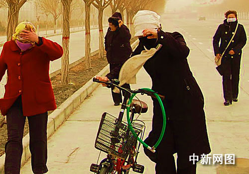 3月28日傍晚至29日白天,甘肃河西走廊出现区域性沙尘暴天气。马鬃山、敦煌、瓜州、玉门、民勤等五地,自西向东先后出现沙尘暴天气,张掖、高台、山丹等地出现浮尘天气。图为3月29日,沙尘袭击玉门新城,路人艰难前行。 方圆 摄