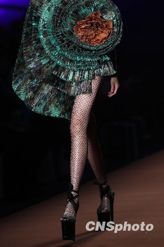 中国国际时装周模特T型台上“失足”摔倒(2)