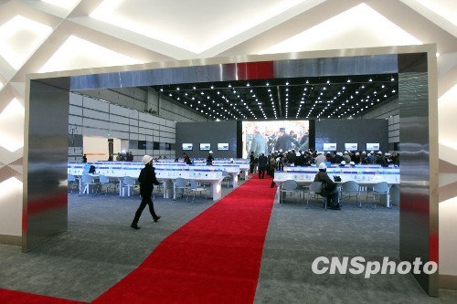 3月30日,近百名中外记者来到上海世博园区参观即将启用的世博会主新闻中心。主新闻中心设置于园区世博中心内,总面积为12000平方米,是世博信息发布和记者工作的主要场所。中新社发 汤彦俊 摄