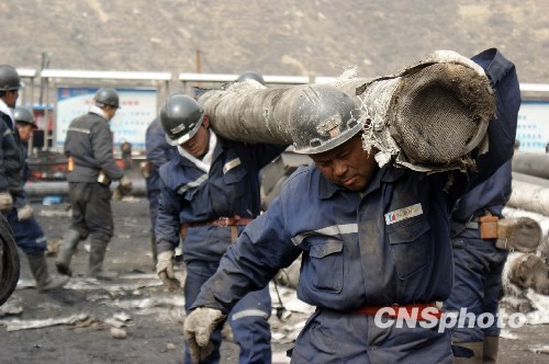3月30日,“3·28”山西王家岭煤矿透水事故抢险工作仍在进行。矿山救护队与矿工们为加快排水进度,夜以继日地工作,不断增添新的排水管道以便尽快救出井下被困矿工。