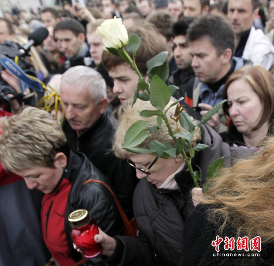 波兰总统坠机身亡 民众总统府前悼念(2)——中新网