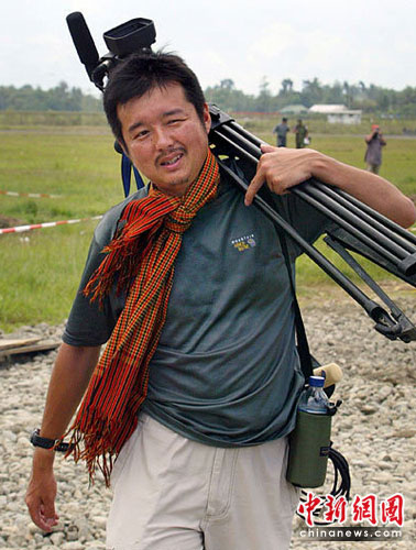 图为2005年1月26日村本博之在印度尼西亚采访的资料照片。