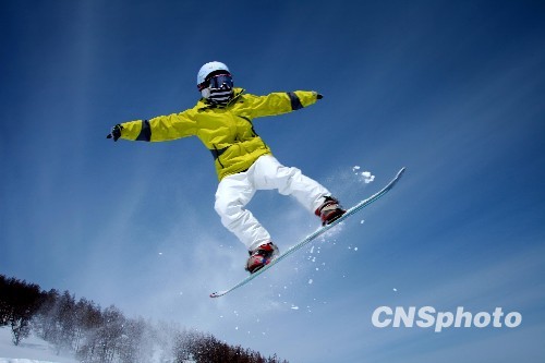 图:喀纳斯上演“雪上飞”单板野雪大回转(6)