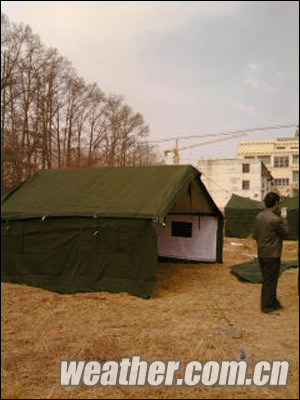 玉树州气象局在空地上搭起临时帐篷。