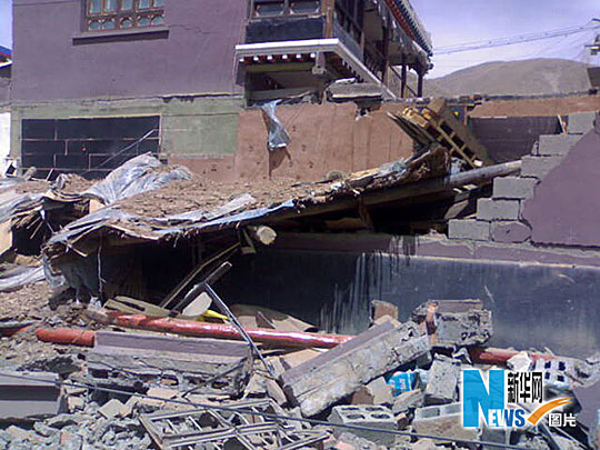 4月14日用手机拍摄的青海玉树州结古镇地震现场。当日早上7时49分,青海省玉树藏族自治州玉树县(北纬33.1度,东经96.7度)发生7.1级地震。
