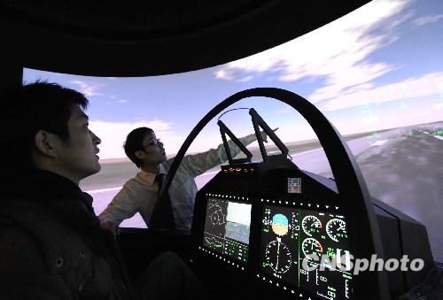 上海世博会浦西园区中国航空馆,嘉宾体验模拟飞行。中新社发 远舟 摄