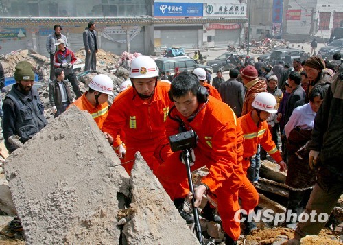 青海玉树地震造成15000户民房倒塌,10万灾民需转移安置。截至4月15日16时30分,玉树地震灾区遇难人数上升到760人,失踪243人,受伤11477人,重伤1174人,伤愈出院4200人。中新社发 邢玉春 摄