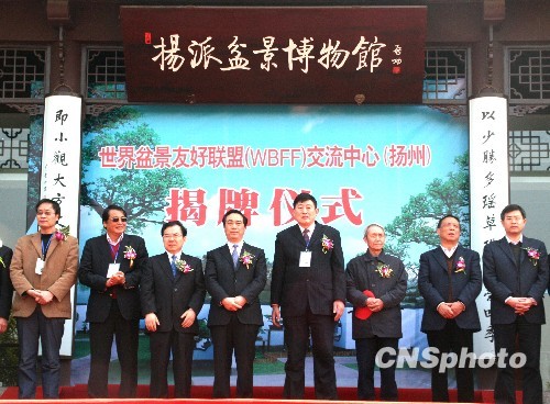 4月16日,扬州举行“世界盆景友好联盟交流中心”落户扬州揭牌仪式。