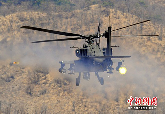 4月15日,美军和韩军在韩国抱川举行联合实弹射击演习。