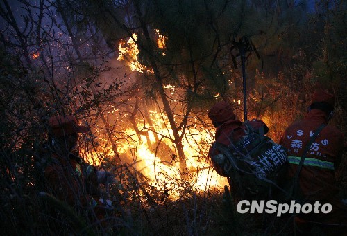 4月16日下午16时49分,在昆明市近郊安宁市凤凰山公墓后山发生一起森林大火。据初步统计,过火面积逾150亩。