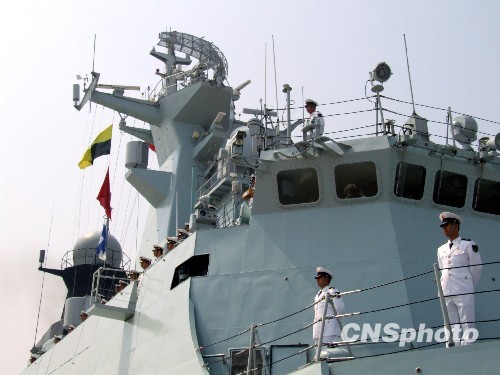 4月23日上午,圆满完成亚丁湾、索马里海域护航任务的第四批护航编队“马鞍山”舰、“温州”舰和“千岛湖”舰,顺利返回浙江舟山某海港。中新社发 徐小勇 摄
