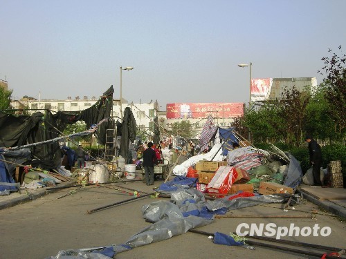 吐鲁番市旅游文化广场边用钢管搭建的小商品市场被大风全部毁坏。 中新社发 姜浩 摄