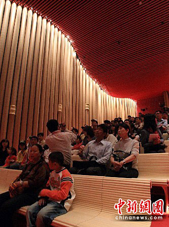 上海世博会日本产业馆影院中的墙壁、椅子,都是用再生纸制作,美丽而环保。中新社发 潘索菲 摄