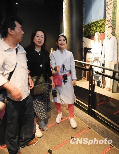 5月4日,上海世博园日本馆,工作人员引领观众体验发电地板。中新社发 廖攀 摄