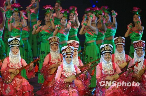 图为柯尔克孜族演员演唱英雄史诗《玛纳斯》。中新社发 刘新 摄