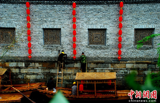 台儿庄也是毁于二战炮火,是中华民族扬威不屈的象征,也是古运河文化的缩影、符号和标志,既有政治价值,也有文化价值,古城建好后将申报世界保护遗产。 中新社发 杨慧峰 摄