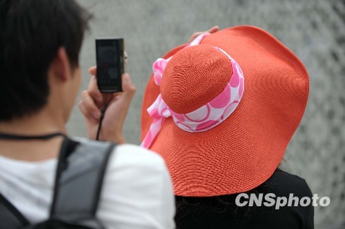 帽子风情万种,成为世博园亮丽风景线。中新社发 陈文 摄