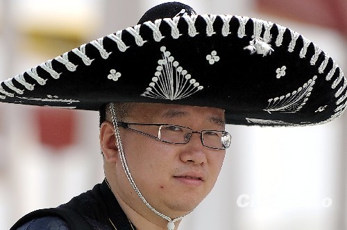 帽子风情万种,成为世博园亮丽风景线。中新社发 陈文 摄