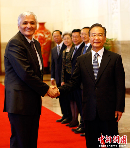 图:温家宝欢迎波黑部长会议主席什皮里奇