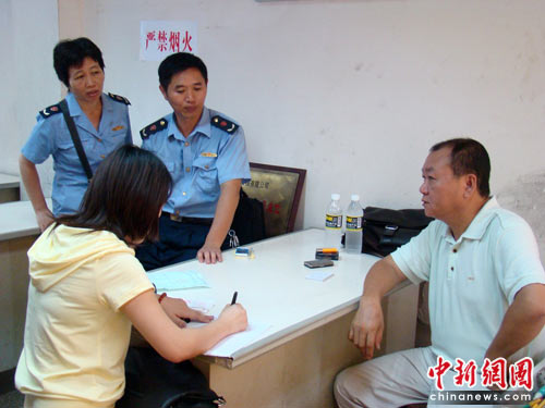 海南“问题汽油”事件发生后,部份受害车主已获现金赔偿。5月10日上午,陆续有近20位“问题汽油”受害车主或开车封堵海南永成加油站讨“说法”。图为海口市工商局大英工商所执法人员也赶到事发现场,协调加油站与受害车主的赔偿事宜。付美斌 摄