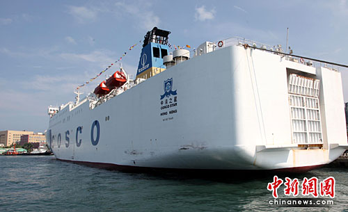 目前海峡两岸最大、最繁华的客滚船“中远之星”首次从厦门直航高雄,靠泊于高雄港3号码头。中新社发 罗钦文 摄