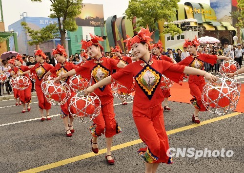 5月10日下午,上海世博会“余杭周•欢乐盛装大巡游”在上海世博园举行。在巡游队伍中,来自杭州余杭区滚灯队近20位姑娘表演了列入国家级“非遗”名录的余杭滚灯,吸引了中外游客观看。
