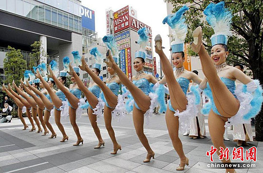 图:日本舞蹈演员街头表演“劈腿”