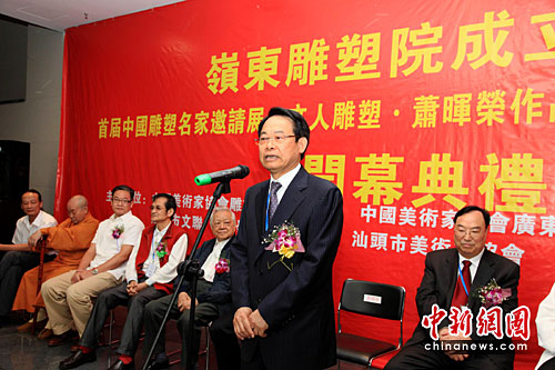 岭东雕塑院的创办者——香港爱国人士、著名雕塑家萧晖荣教授在成立典礼上致辞。中新社发 王保胜 摄