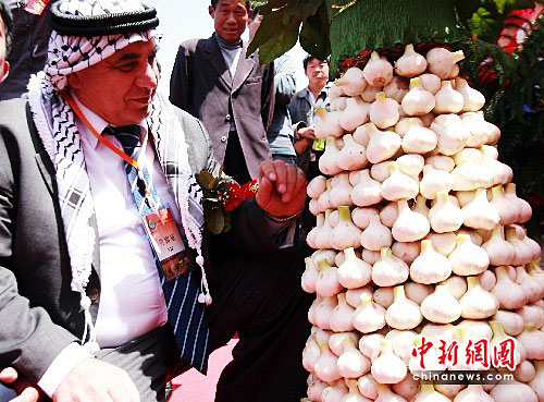 巴勒斯坦国前驻华大使、亚非组织非中投资委员会中国地区代表穆斯塔法·萨法日尼关注新蒜上市。中新社发 王中举 摄