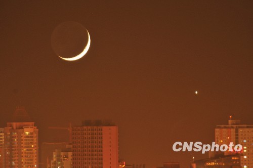 5月16日晚,新疆库尔勒市出现“月掩金星”奇妙天象。当日,中国部分地区可观赏到该天象。“月掩金星”是指月亮在运行中,恰好走到金星和地球的中间,三个星球呈一条直线时发生的天象。 中新社发 确·胡热 摄