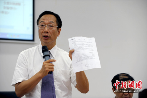5月26日,富士康科技集团总裁郭台铭在深圳就“富士康员工自杀事件”表示,我除了致歉还是致歉,除了痛心还是痛心。当日,郭台铭在深圳出席第三届海峡两岸心理暨社会学专家团调研座谈会,在会场当着社会专家学者、员工代表、媒体记者等千余人的面深深三鞠躬。据了解,富士康为应对近期频繁发生的员工自杀事件,已启动“相亲相爱”活动,防止员工轻生事件再次发生。中新社发 陈文 摄
